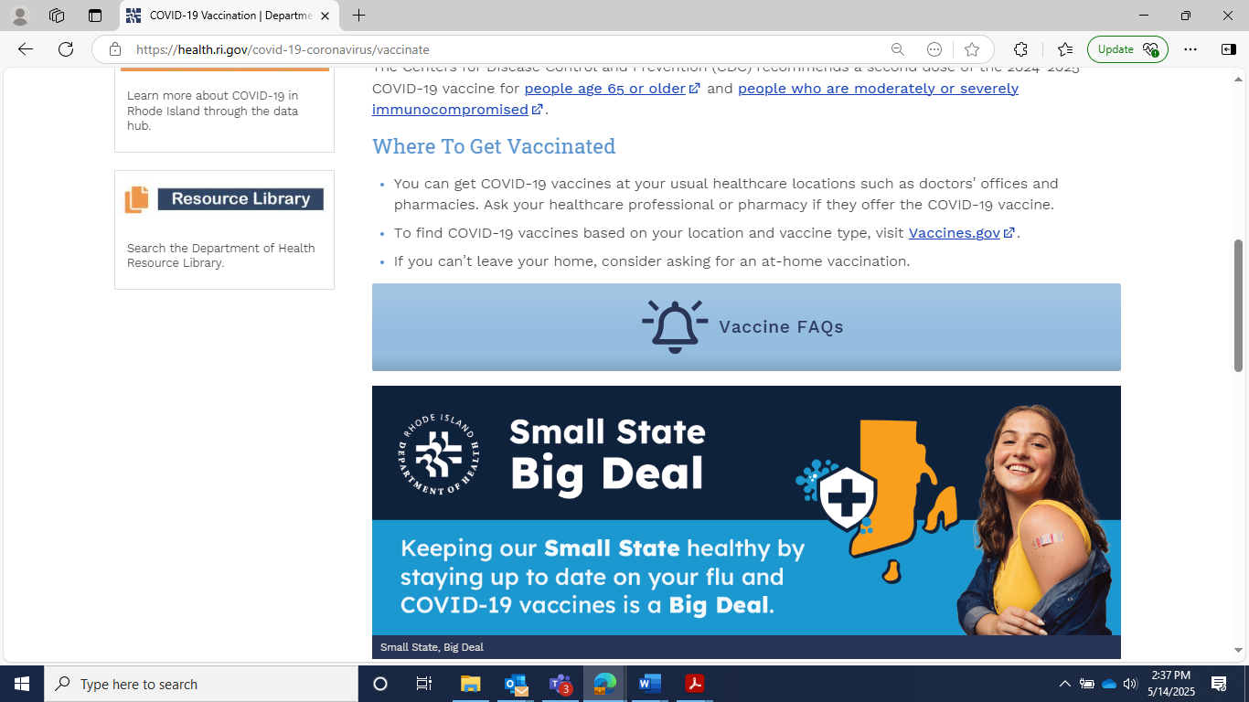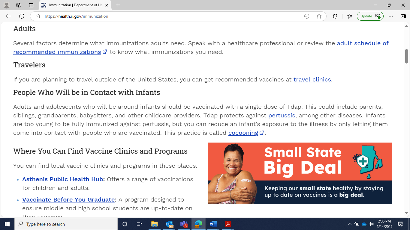To address these concerns, RIDOH’s Office of Immunization launched the Small State, Big Deal campaign to establish a cohesive, locally trusted identity for all immunization messaging. The campaign was developed in consultation with community-based organizations and feedback from Rhode Island’s Vaccine Confidence team outreach staff. Assets from Small State, Big Deal were integrated across immunization program materials, including banners on RIDOH’s immunization webpage and outreach materials at public health events.