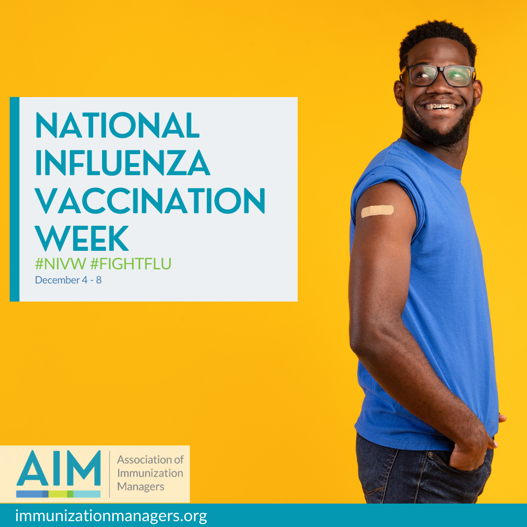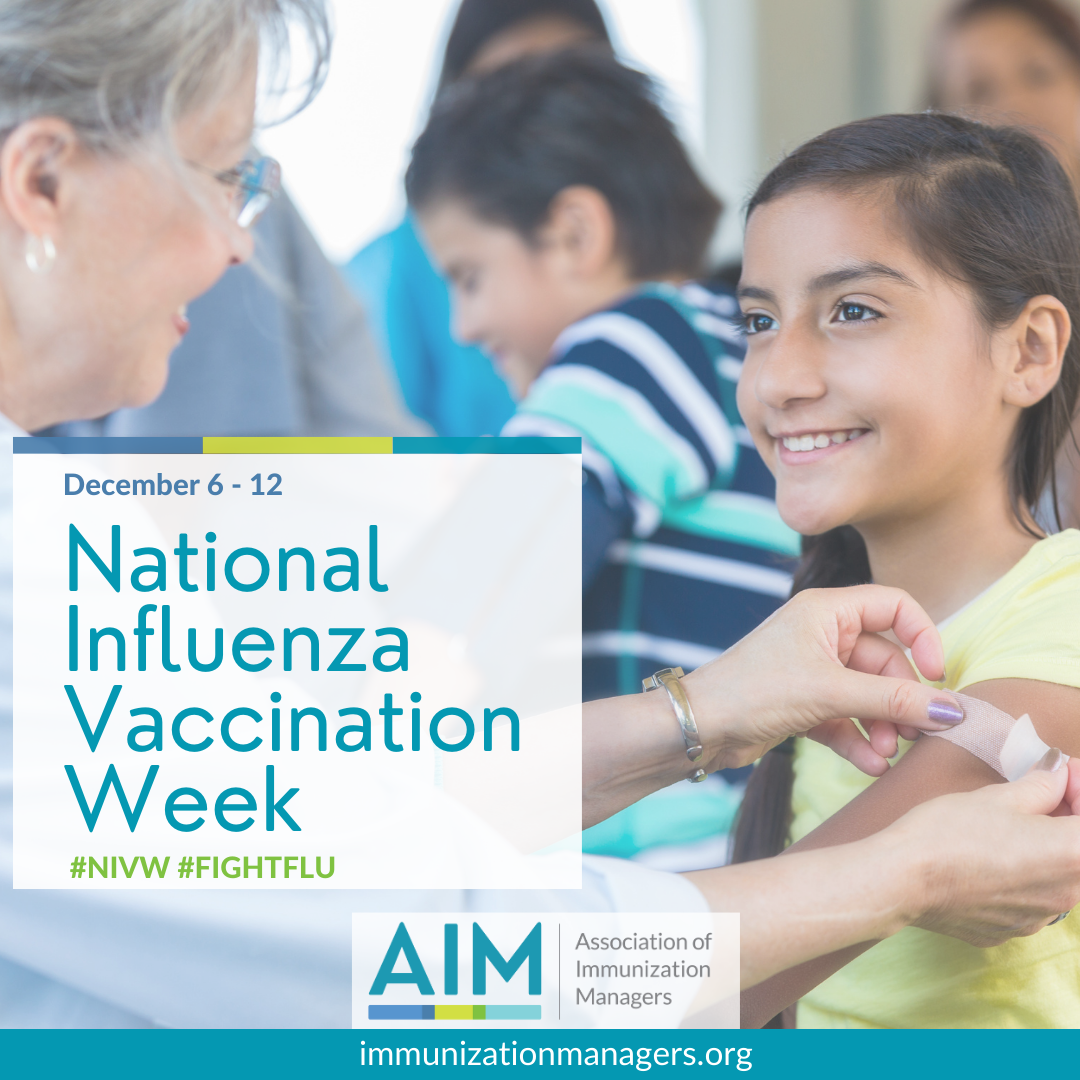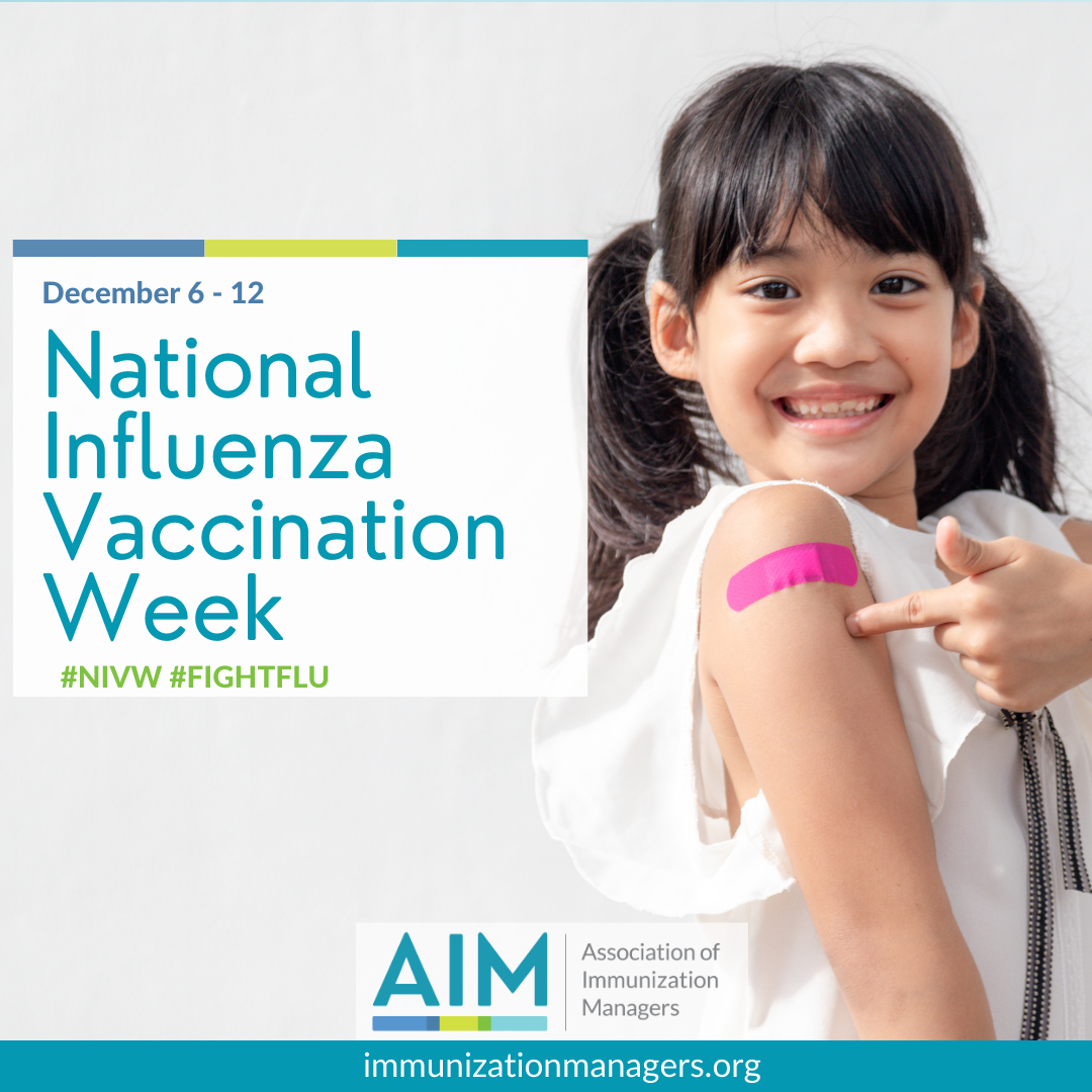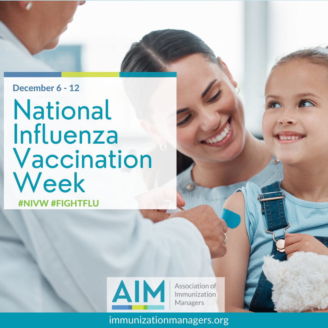 From December 4-8, join AIM in building awareness for National Influenza Vaccination Week #NIVW! The CDC hosts this awareness week annually to remind everyone 6 months and older that there’s still time to get a flu vaccine. Flu vaccines are the best protection against serious flu disease that can cause hospitalization and even death.