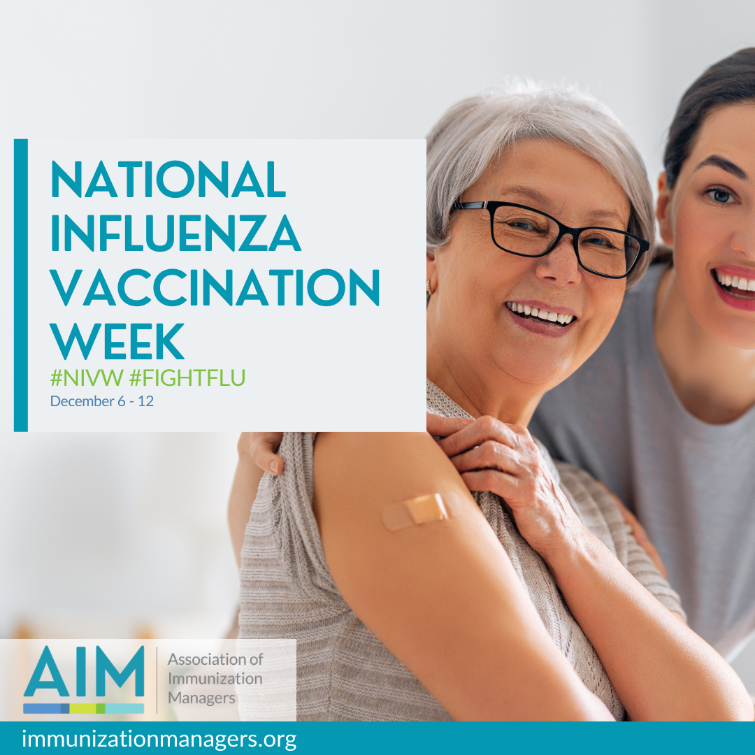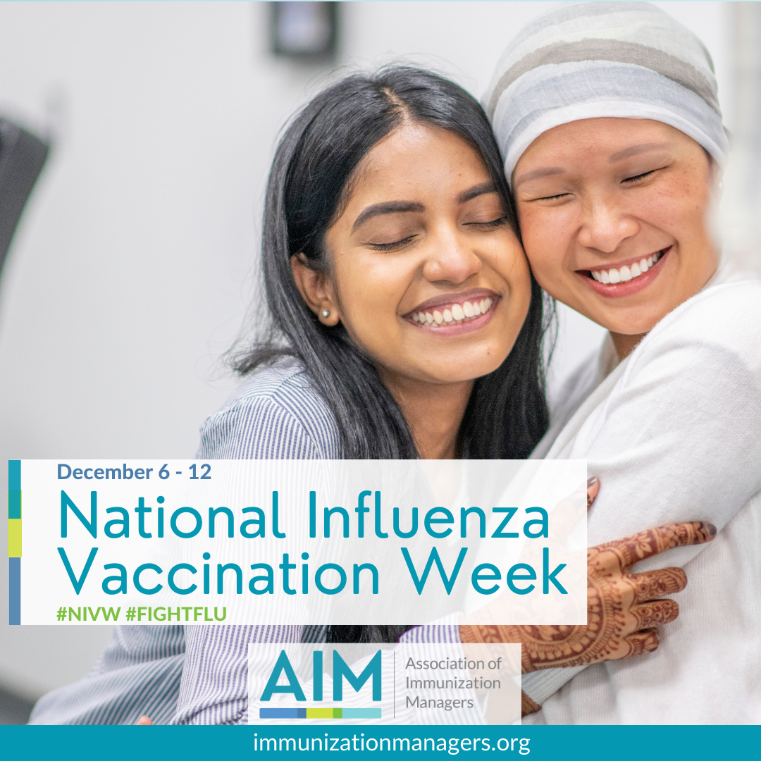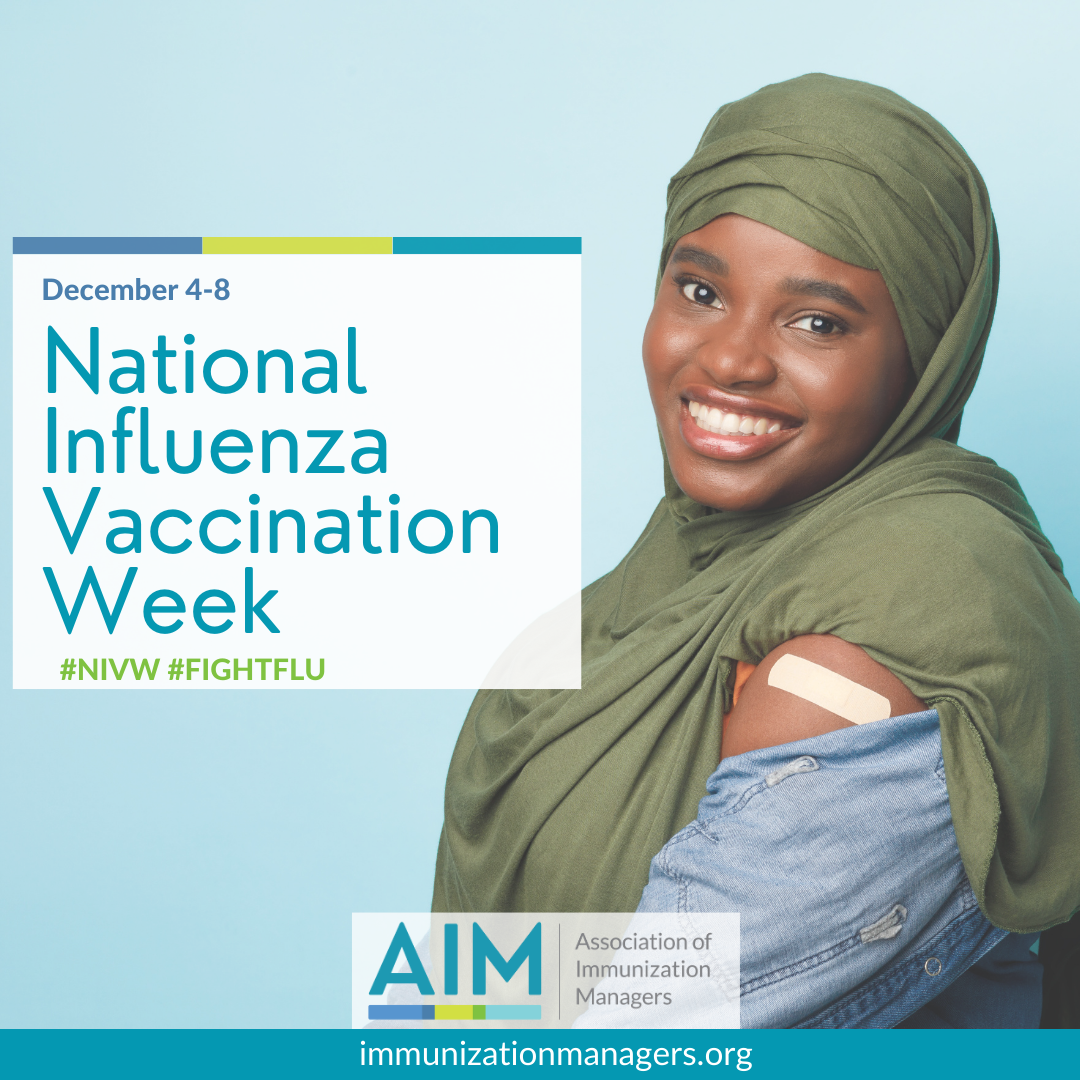 From December 4-8, join AIM in building awareness for National Influenza Vaccination Week #NIVW! The CDC hosts this awareness week annually to remind everyone 6 months and older that there’s still time to get a flu vaccine. Flu vaccines are the best protection against serious flu disease that can cause hospitalization and even death.