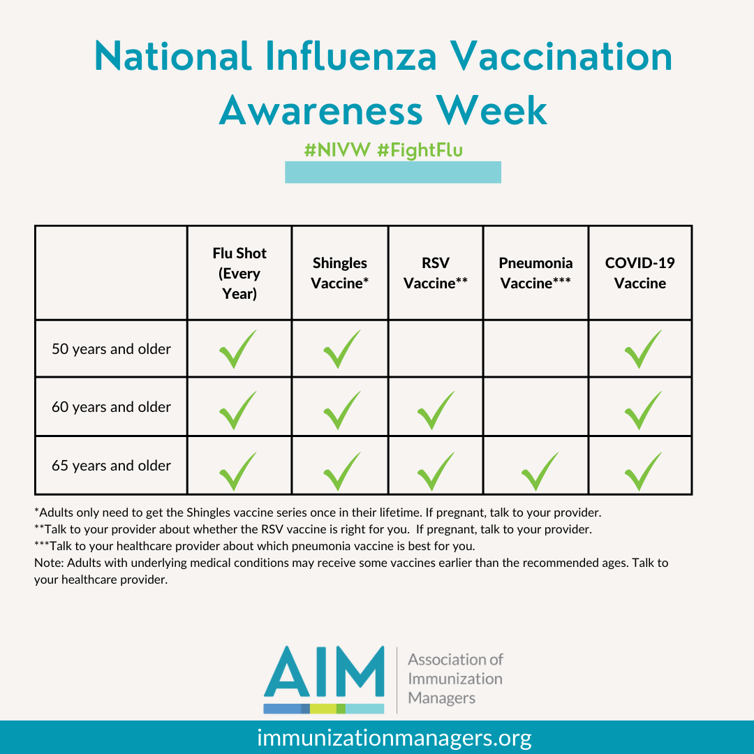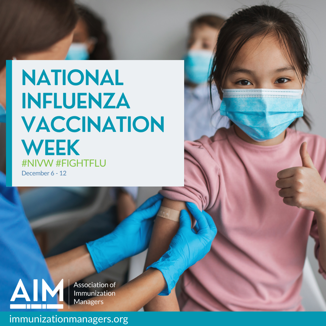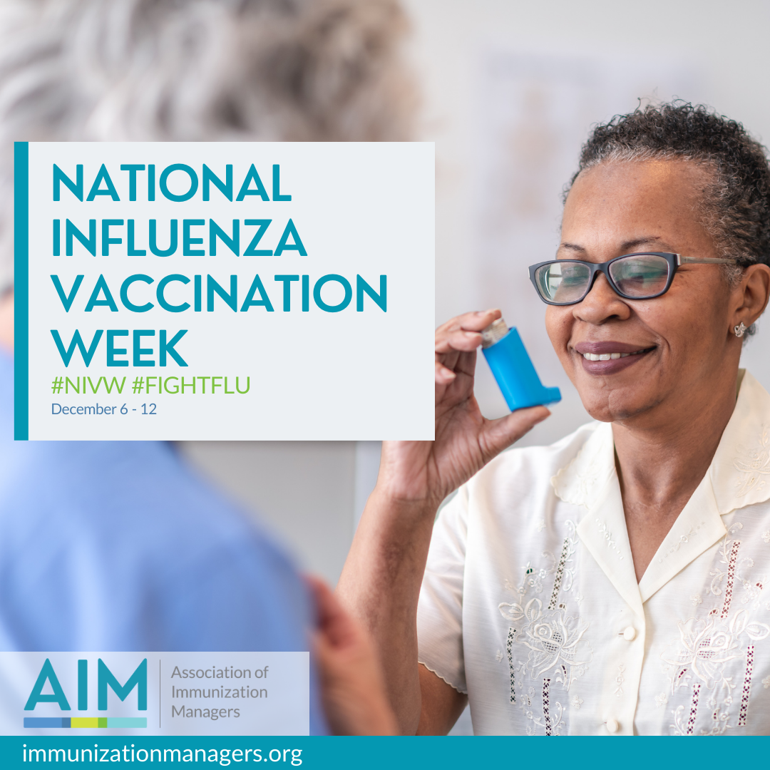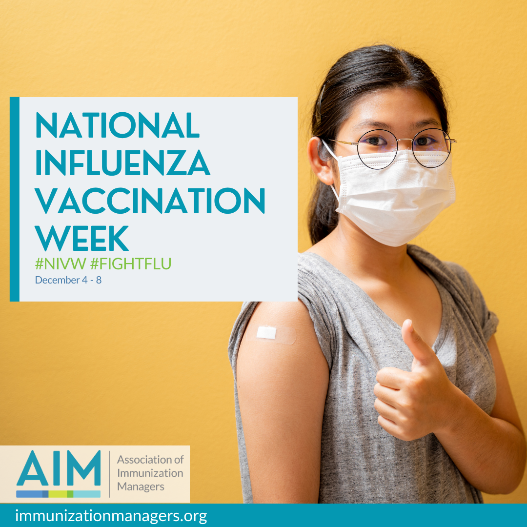 From December 4-8, join AIM in building awareness for National Influenza Vaccination Week #NIVW! The CDC hosts this awareness week annually to remind everyone 6 months and older that there’s still time to get a flu vaccine. Flu vaccines are the best protection against serious flu disease that can cause hospitalization and even death.