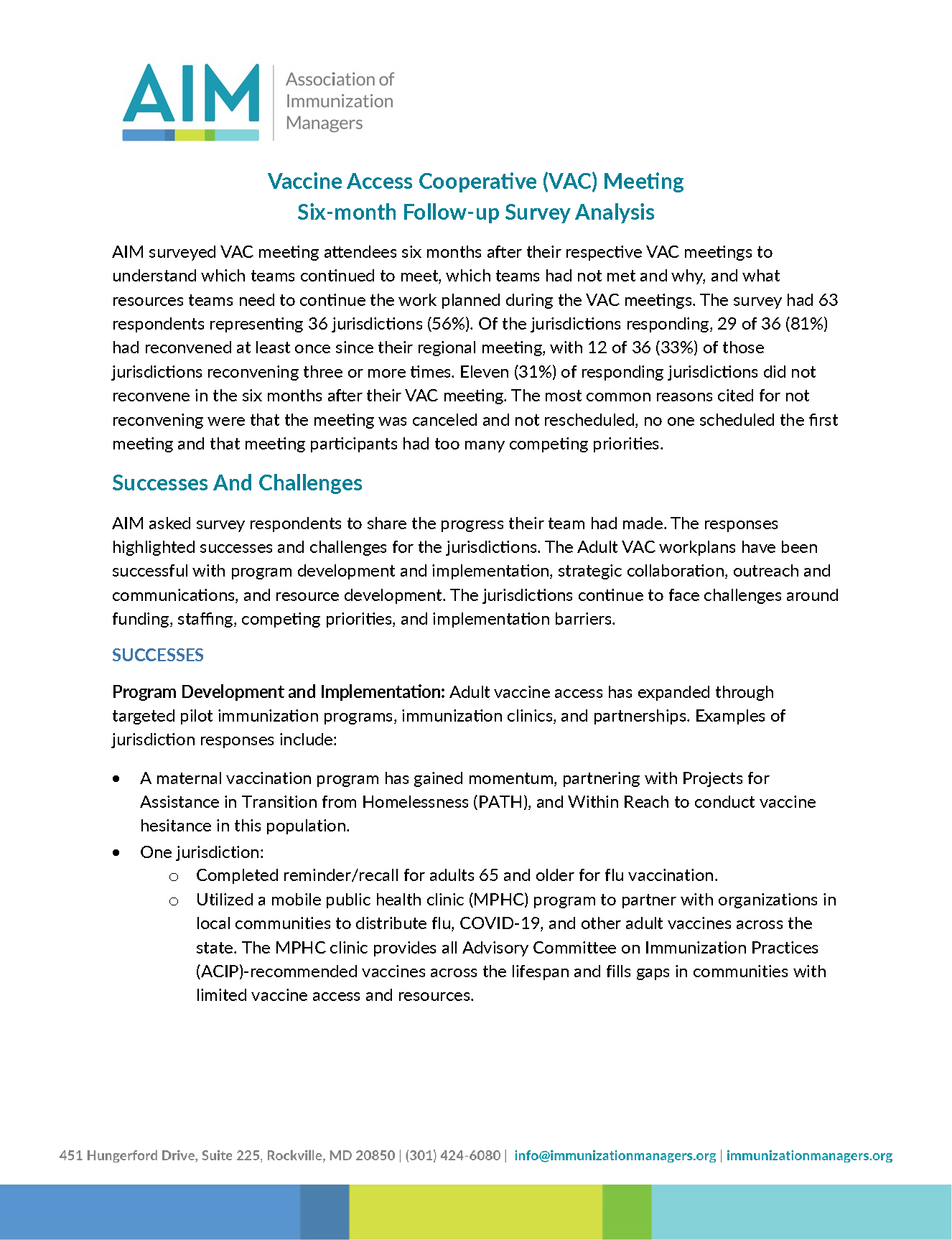 This report is a detailed overview of the 2024 Adult Vaccine Access Cooperative (VAC) meetings.