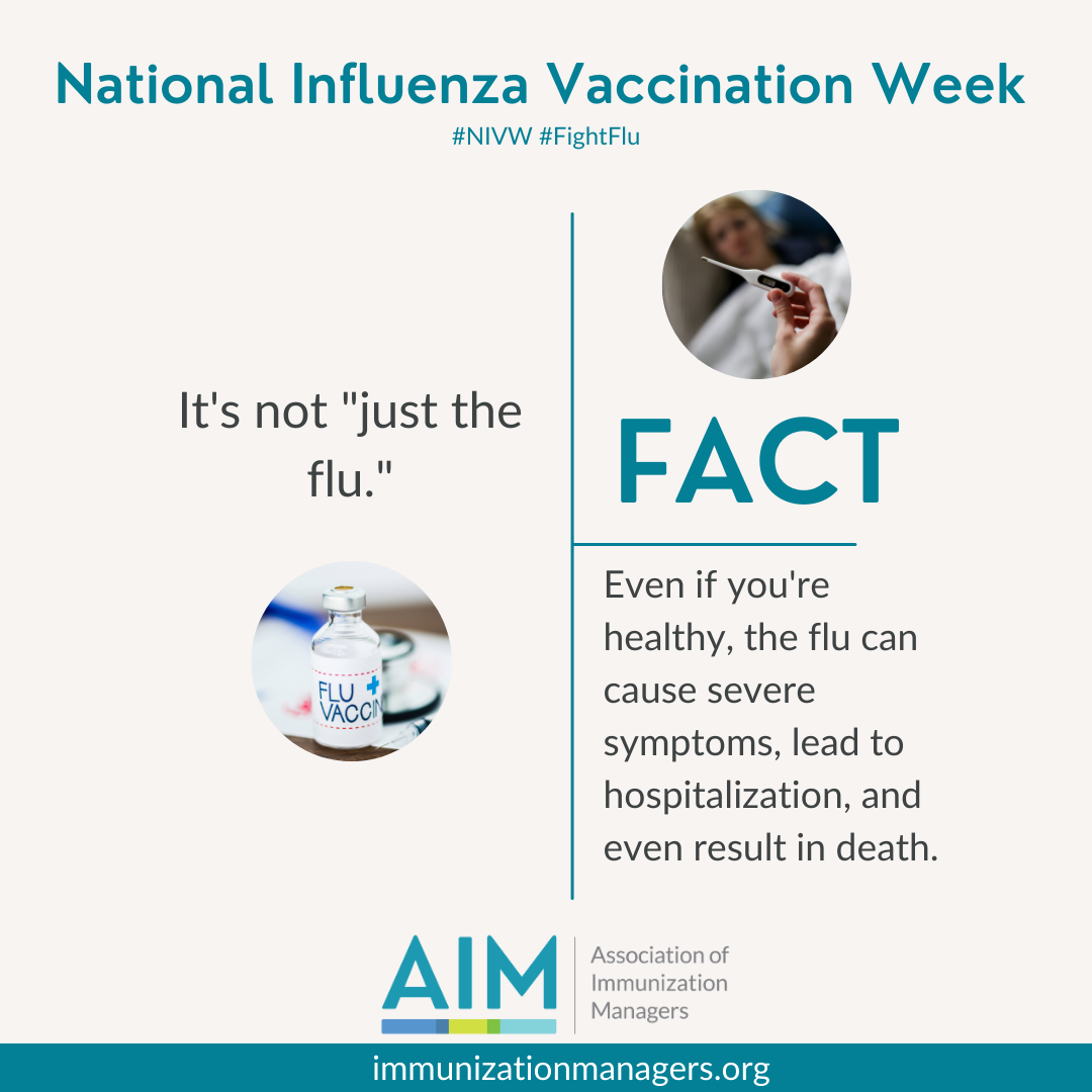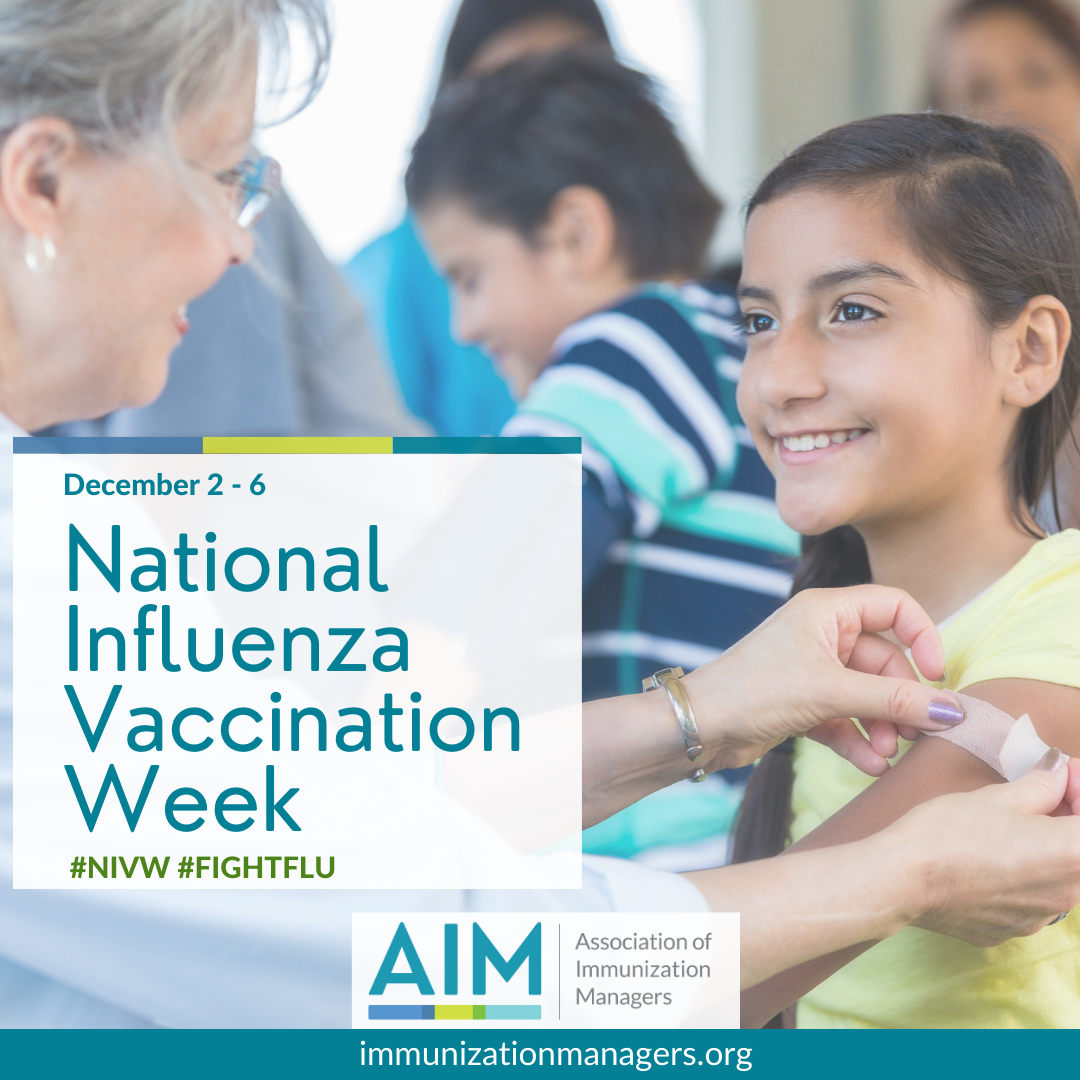 From December 2-6, join AIM in building awareness for National Influenza Vaccination Week #NIVW! The CDC hosts this awareness week annually to remind everyone 6 months and older that there’s still time to get a flu vaccine. Flu vaccines are the best protection against serious flu disease that can cause hospitalization and even death.