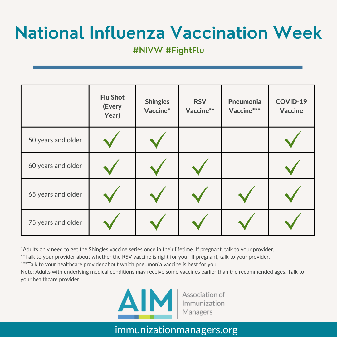 - Did you know that the flu can hit older adults the hardest? If you’re over 65, or if you’re taking medications that weaken your immune system, a higher dose or “adjuvanted” flu vaccine might offer the best protection. Talk to your healthcare provider to find the right flu shot for you. This National Influenza Vaccination Week, make sure to schedule your vaccination and stay protected! #NIVW #FightFlu