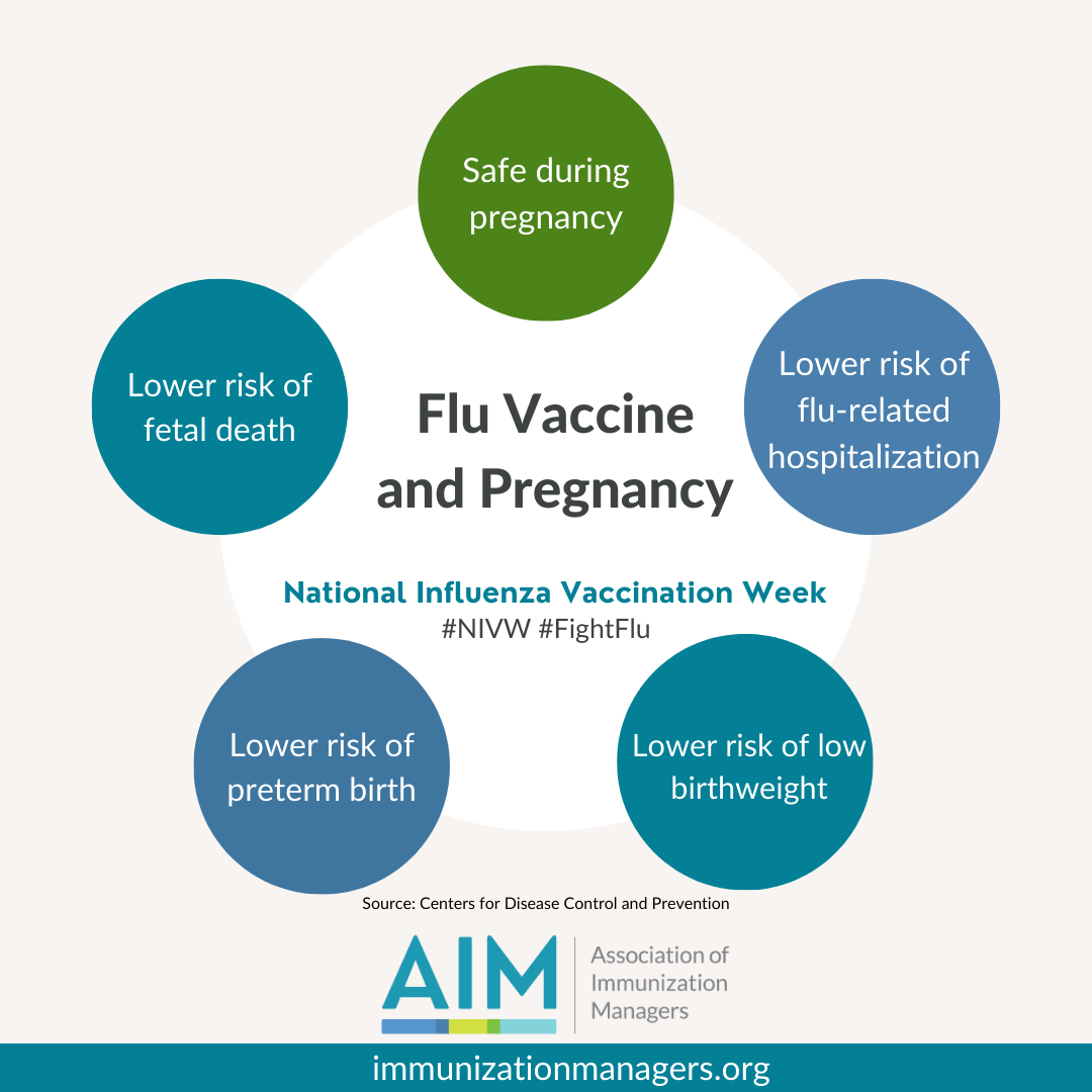 - Pregnant? National Influenza Vaccination Week is a great time to get your flu vaccination! The flu vaccine protects both the pregnant person and the baby. Flu vaccines are safe for pregnant and postpartum people and help keep families healthy. Find more information on the CDC’s website. #NIVW #FightFlu