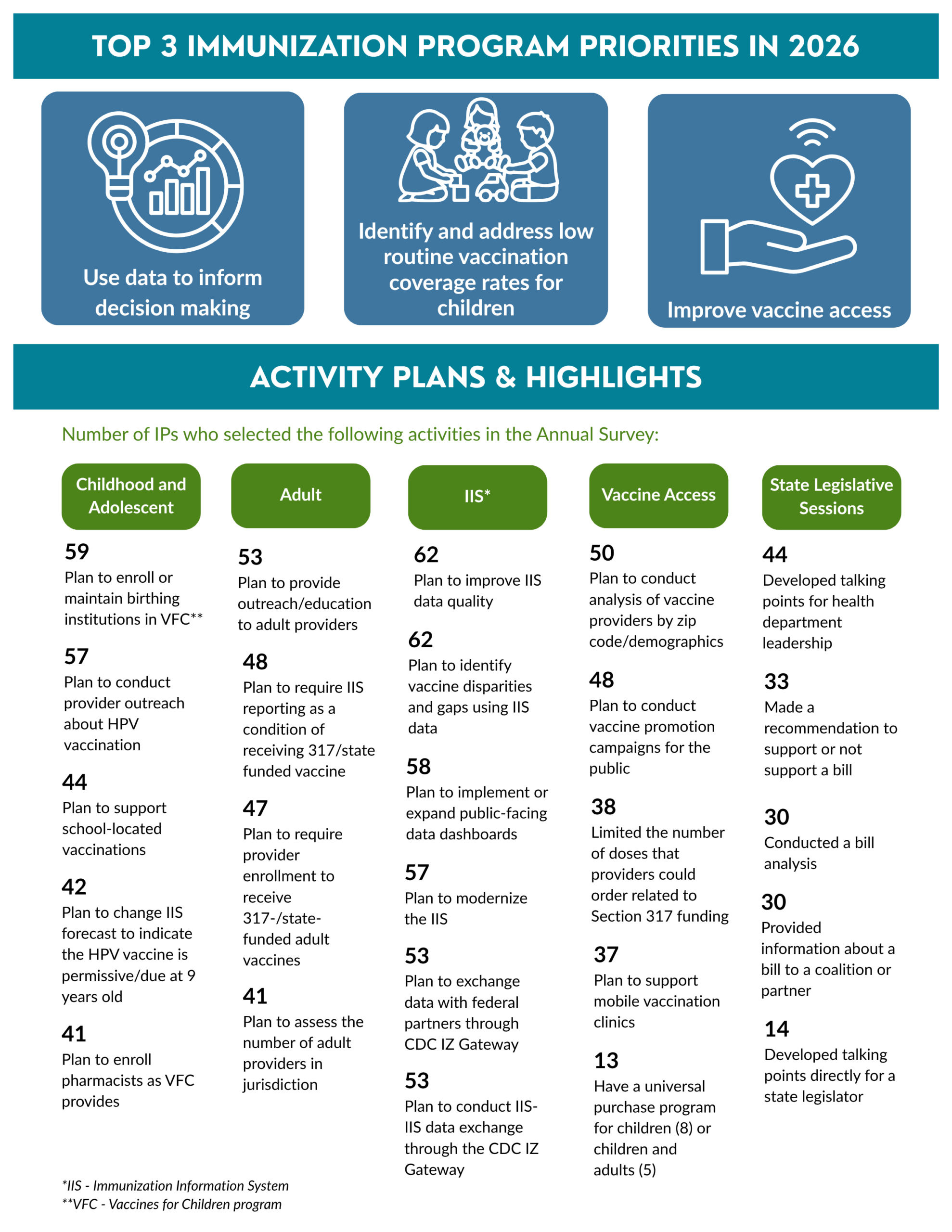 - Number of immunization programs conducting activities related to: