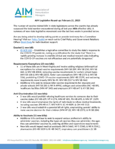 Please Note: AIM is striving to monitor fast-moving state legislative developments. The information included in this summary may not be comprehensive and is subject to change. If you are aware of missing information, please contact our Chief Policy and Government Relations Officer Brent Ewig.