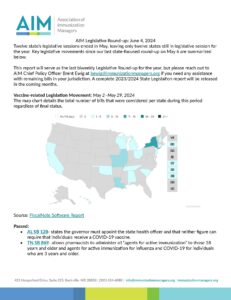 Please Note: AIM is striving to monitor fast-moving state legislative developments. The information included in this summary may not be comprehensive and is subject to change. If you are aware of missing information, please contact our Chief Policy Officer Brent Ewig.