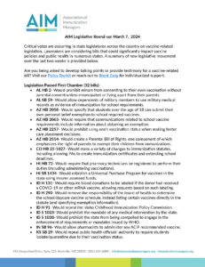 Critical votes are occurring in state legislatures across the country on vaccine-related legislation. Lawmakers are considering bills that could significantly impact vaccine policies and public health in numerous states. A summary of new legislative movement over the last two weeks is provided in the PDF.