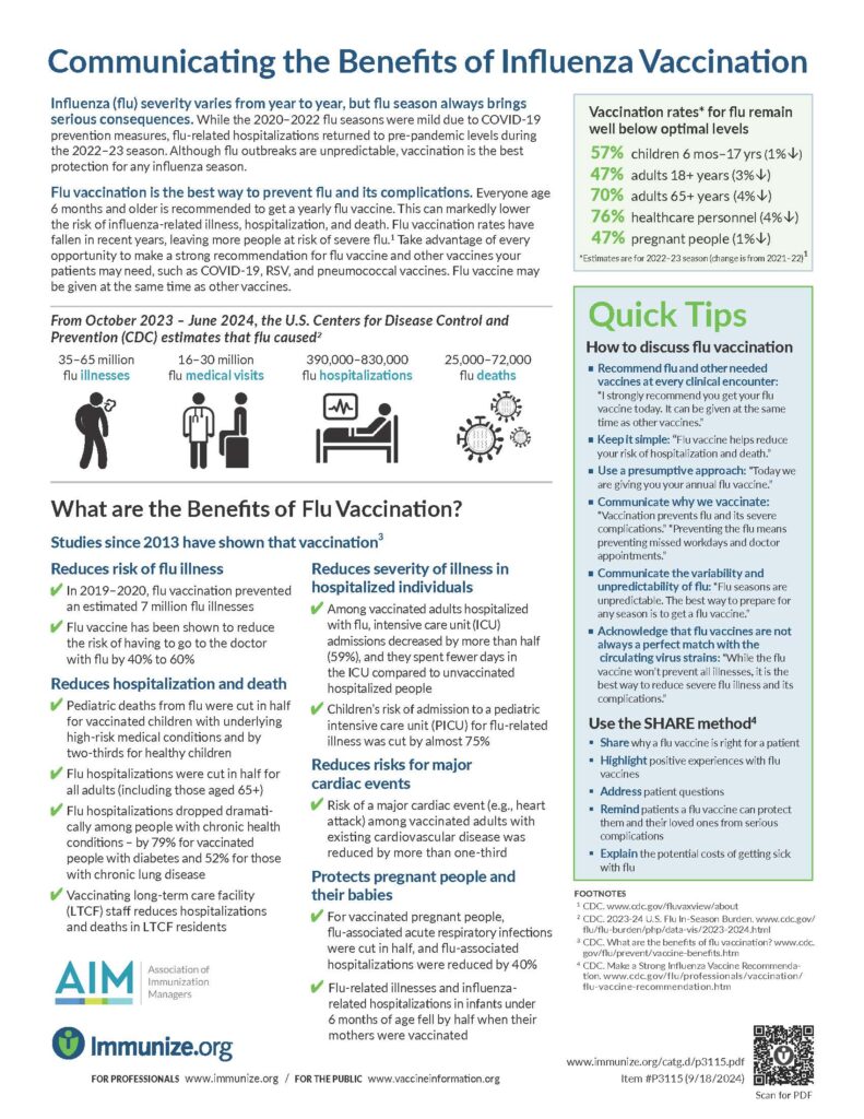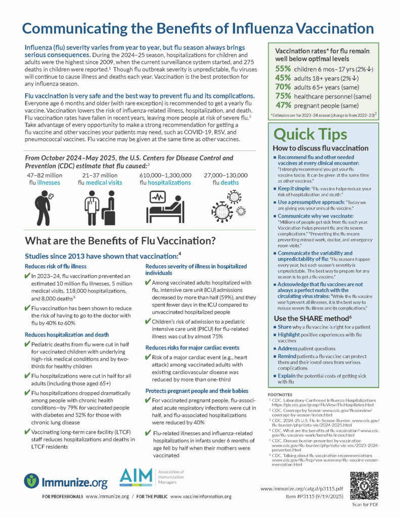 - Program Planning – programmatic and clinic operations resources to streamline influenza vaccination activities