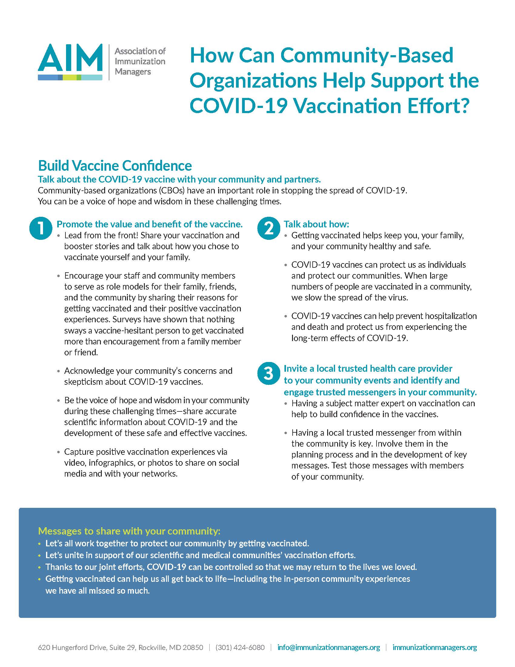 - Hosting several information sessions leading up to a vaccination event to help build vaccine confidence.