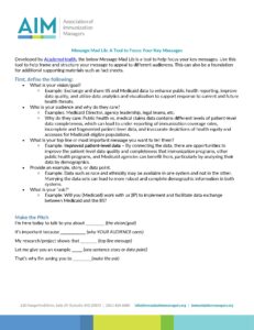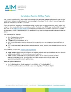 Use this tool to develop data points about the information in the IIS and how the information is collected and used. Having data points will be impactful when speaking to the value of the IIS and why data exchange with Medicaid and other stakeholders is essential.