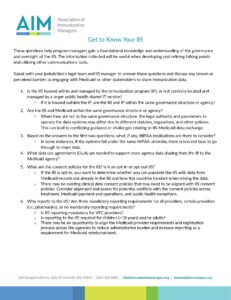 These questions help program managers gain a foundational knowledge and understanding of the governance and oversight of the IIS. The information collected will be useful when developing and refining talking points and utilizing other communications tools.