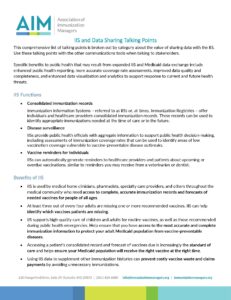 This comprehensive list of talking points is broken out by category about the value of sharing data with the IIS. Use these talking points with the other communication tools when talking to stakeholders.