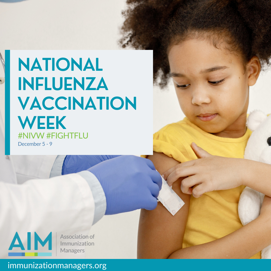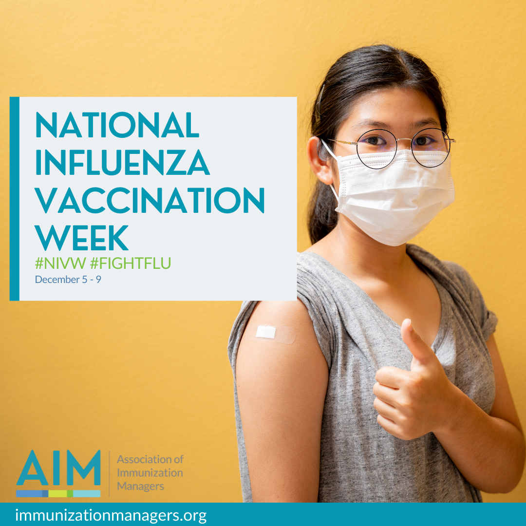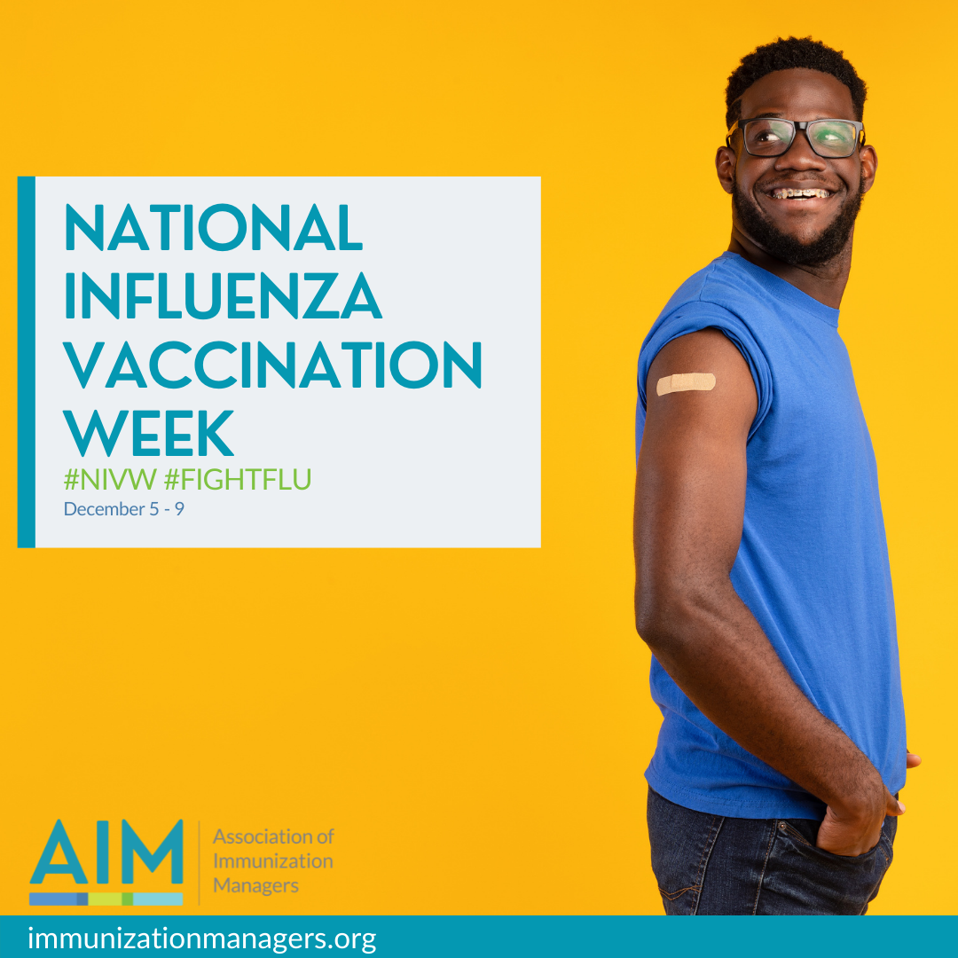 From December 5-9, join AIM in building awareness for National Influenza Vaccination Week #NIVW! The CDC hosts this awareness week annually to remind everyone 6 months and older that there’s still time to get a flu vaccine. Vaccination is particularly important this year as infections are at a record high throughout the United States.