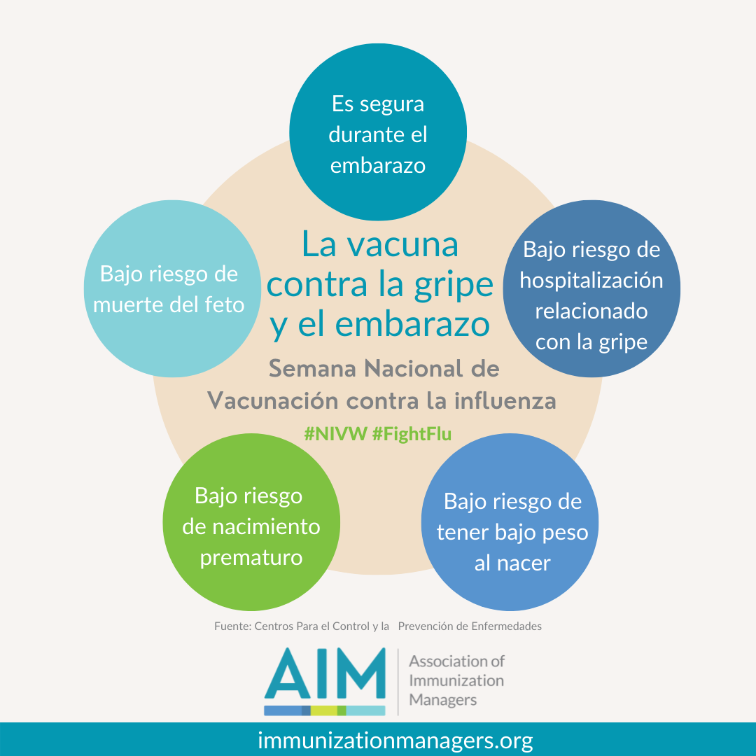 - ¿Estás embarazada? La Semana Nacional de Vacunación contra la influenza es un buen momento para recibir esta vacuna. Nuevos estudios de los CDC muestran que esta inmunización protege tanto a la persona embarazada como al bebé. Las vacunas contra la influenza son seguras durante el periodo de gestación y el posparto, ayudando a mantener saludables a las familias. Encuentra más información en el sitio web de los CDC. #NIVW #FightFlu #CombateLaInfluenza