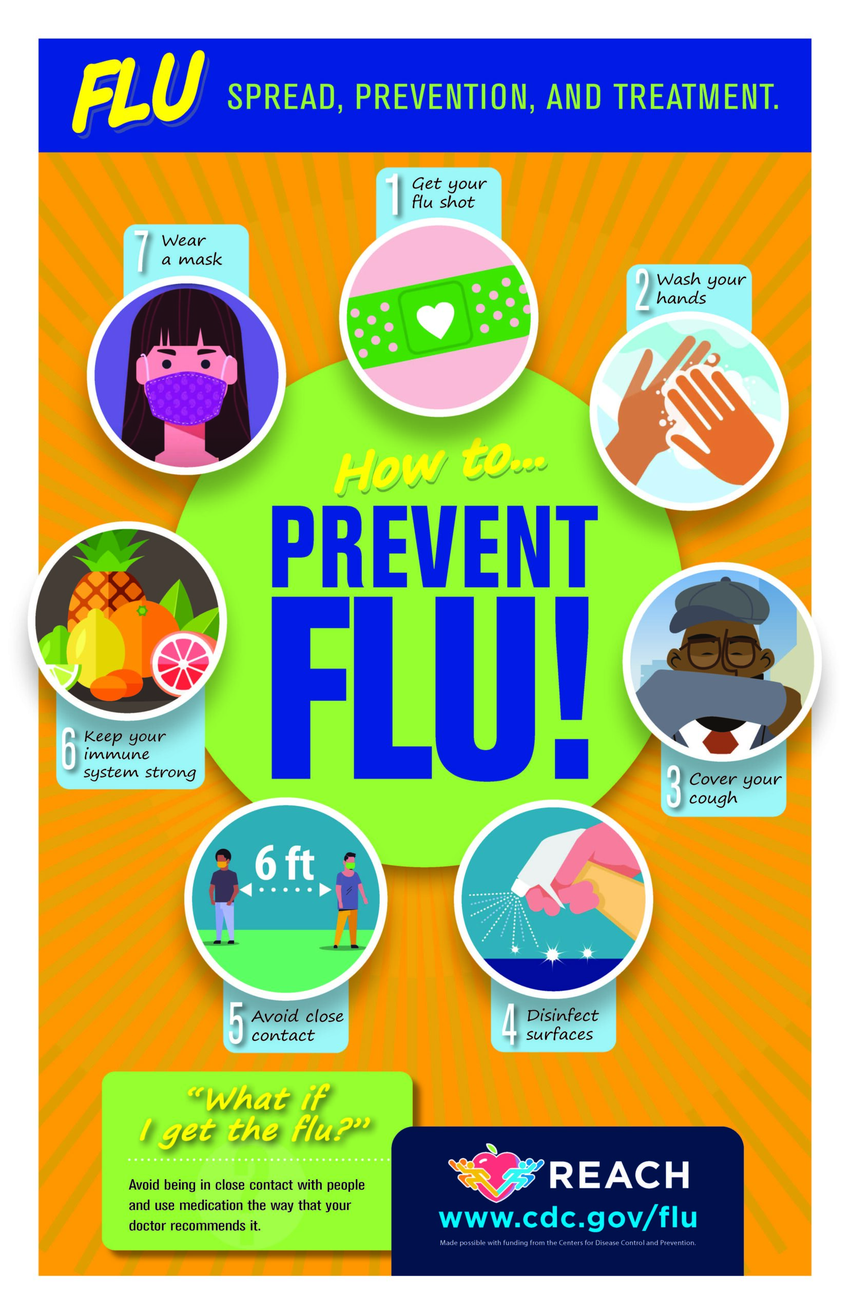 View informational flyers about the flu, available in both English and Spanish, created by Penn State REACH. The flyers share information on how to stop the spread, prevent illness, and treat disease. Featuring illustrated step-step instructions, flyers use plain language to increase accessibility and reach.