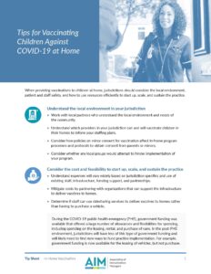 This implementation guide answers the “what,” “why,” and “how” of vaccinating children against COVID-19 at home. Across these three chapters, you will find:
