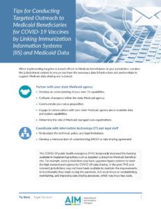 This tip sheet provides key considerations and implementation tips for immunization programs when implementing targeted outreach to Medicaid beneficiaries.