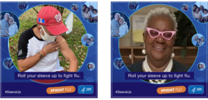 Materials used to promote influenza vaccination include CDC awareness and prevention information, such as Flu Vaccine: Get the Facts, Vaccine Finder, Take 3 Steps to Fight the Flu, Influenza Vaccine: Who Should Get It and Who Should Not, and more! Educational videos were also used, including #SleeveUp: Roll Up Your Sleeve for Your Annual Flu Vaccine, Know The Symptoms of the Flu, and What You Need to Know About Handwashing.