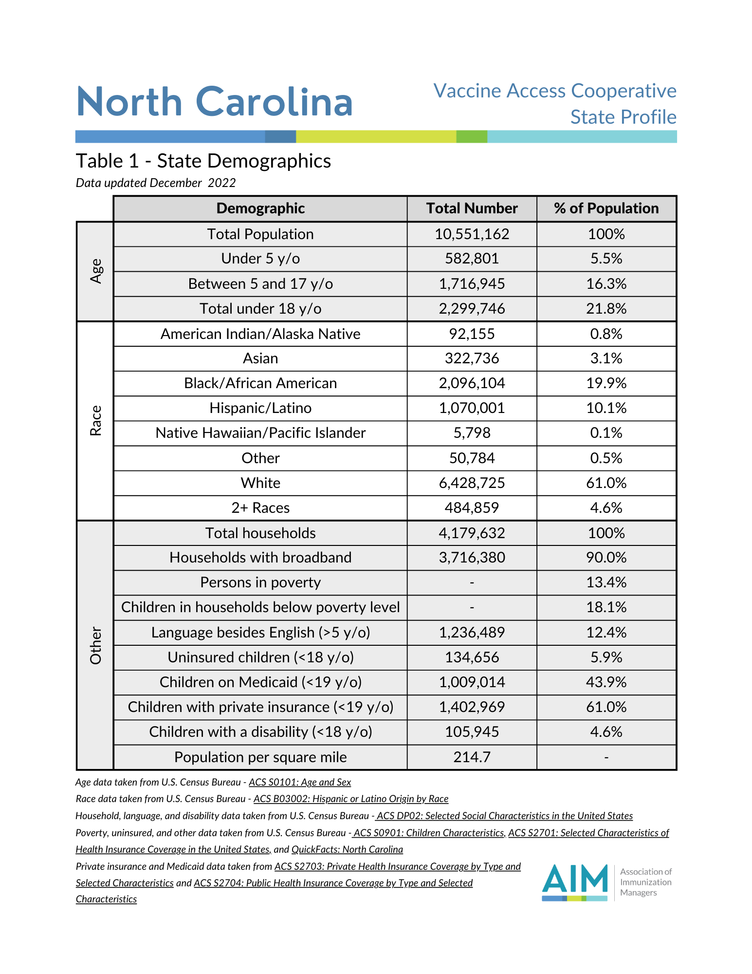 This collection of jurisdiction profiles details AIM’s Southeast region. As part of the Vaccine Access Cooperative (VAC) project, these profiles include jurisdiction demographics, COVID-19 vaccination rates, school vaccine requirements, vaccine coverage and exemption rates among children in kindergarten, and other relevant vaccination details. If you have any questions, contact us.