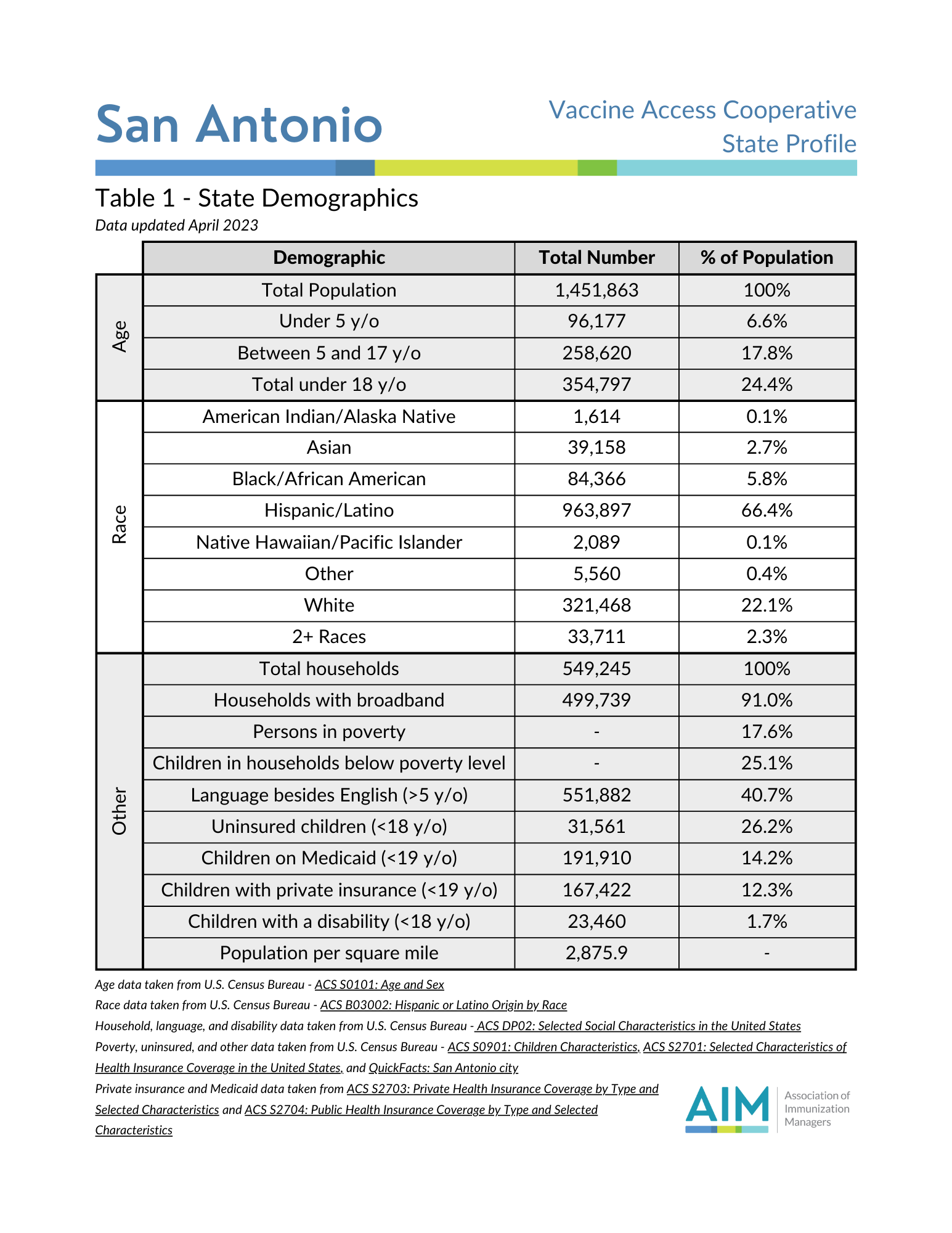 This collection of jurisdiction profiles details AIM’s Southwest region. As part of the Vaccine Access Cooperative (VAC) project, these profiles include jurisdiction demographics, COVID-19 vaccination rates, school vaccine requirements, vaccine coverage and exemption rates among children in kindergarten, and other relevant vaccination details. If you have any questions, contact us.